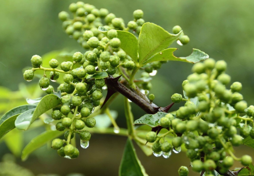 ? ? ? 由于花椒多子,香味綿長,比喻多子多孫、情侶之間感情悠遠綿長。在《詩經》中記載周朝的時候,人們將花椒當作定情之物。姑娘在綠樹茵茵中翩翩起舞,小伙子被姑娘的舞姿吸引,手捧一束花椒來到心愛的姑娘面前,表示小伙子向姑娘示愛。