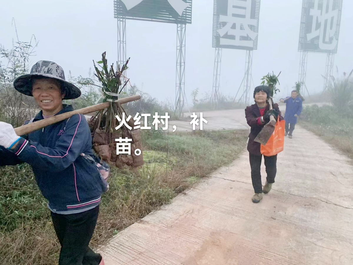 放眼望去,工人們拿著樹苗、扛著鋤頭、正在種植園區(qū)穿梭著、忙碌著,他們用實(shí)際行動(dòng)傳達(dá)了對(duì)勞動(dòng)的激情。