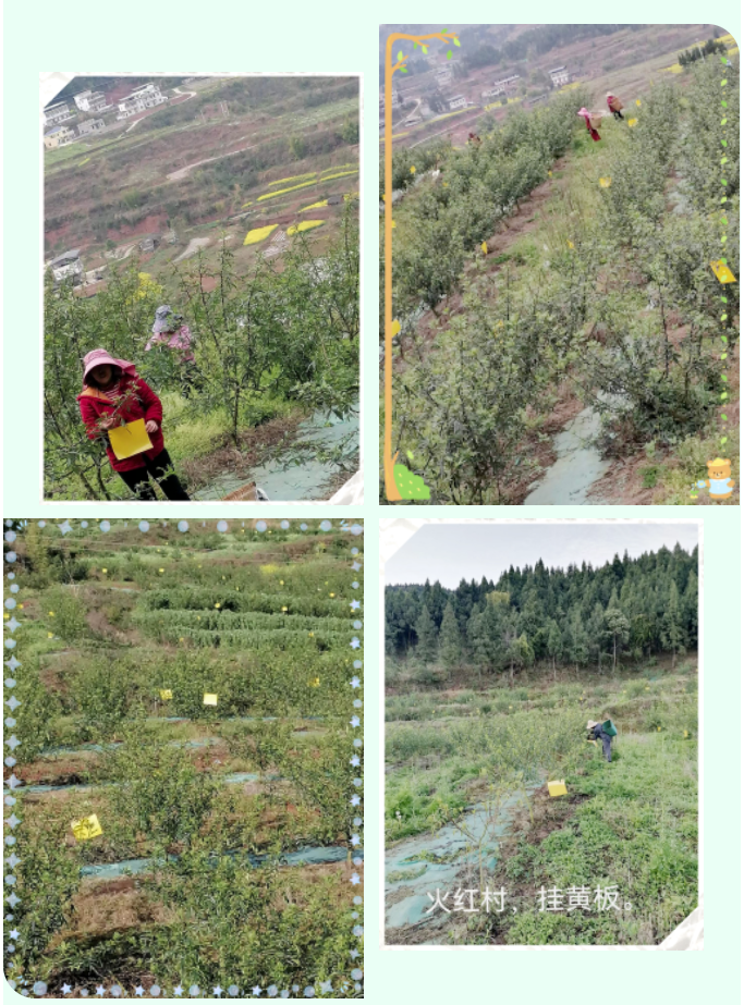 ? ? ? ? 近日,千久發花椒基地工作人員積極組織人員對種植園內的花椒樹進行掛黃板,強化種植園生態防蟲害工作;此法利用趨黃性,懸掛黃板誘殺,對蚜蟲遷飛傳染病毒有較好的預防效,以保障基地內的九葉青花椒健康生長。